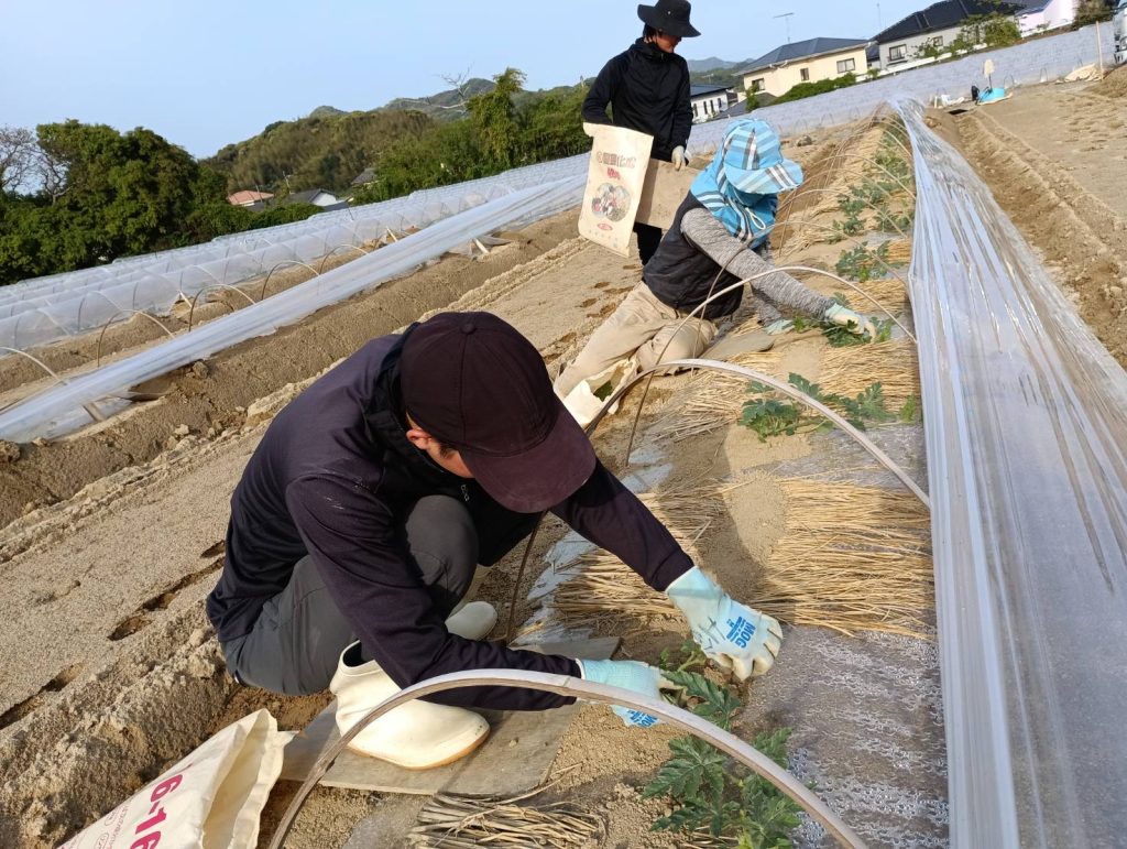 糸島の豊かな自然の中で、仲間と協力しながら作物を育てるやりがいのある仕事です。チームワークを大切にし、皆で楽しく作業に取り組んでいます。
